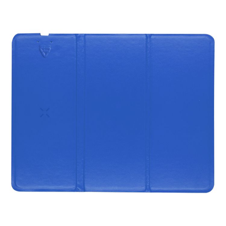 Alfombrilla de ratón plegable de piel de PU reciclada con funciones incorporadas de cargador inalámbrico (10 W) y soporte para teléfono móvil. Con base de terciopelo antideslizante. Incluye cable de carga USB.