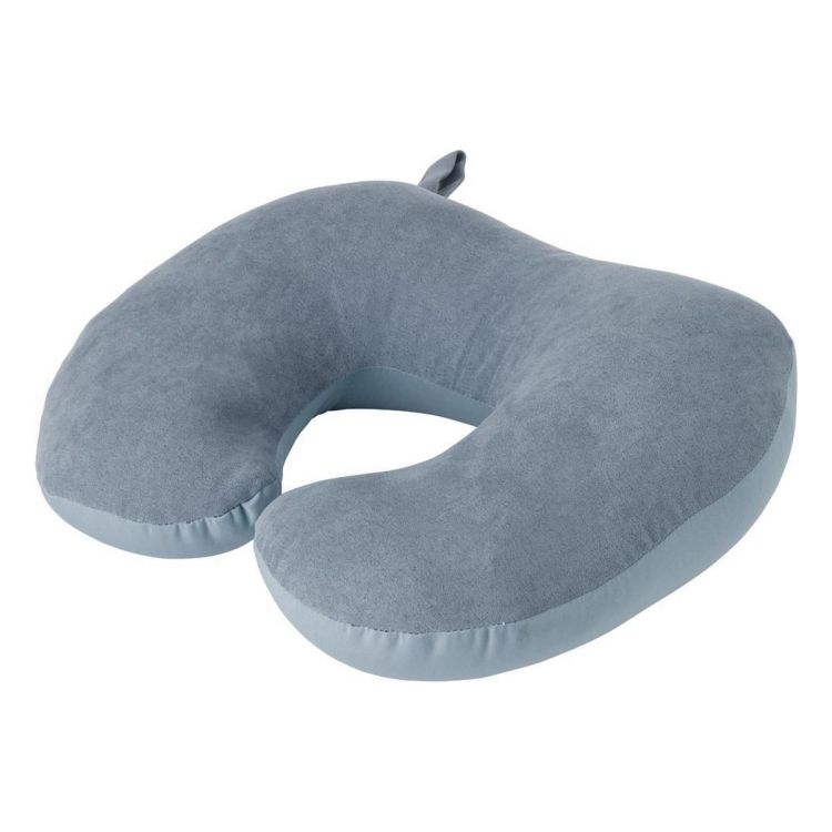 Almohada de viaje 2-en-1 con perlas de espuma de polietileno. La almohada puede transformarse de cuello redonda a rectangular mediante el uso de la cremallera.
