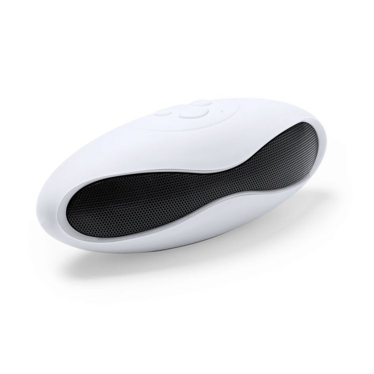 Altavoz de conexión Bluetooth. De atrevido diseño bicolor y suave acabado, con conexión Bluetooth 3.0, ofrece 3W de potencia, tiene función de manos libres, una ranura para tarjetas mini SD de hasta 32 GB de capacidad, función radio FM, entrada auxiliar de línea mediante conexión jack de 3,5mm y soportes de goma antideslizantes en la base. Compatible con iOS y Android, incluye cable de carga mini USB, cable auxiliar jack de 3,5mm y viene presentado en atractiva caja de diseño. (color blanco)