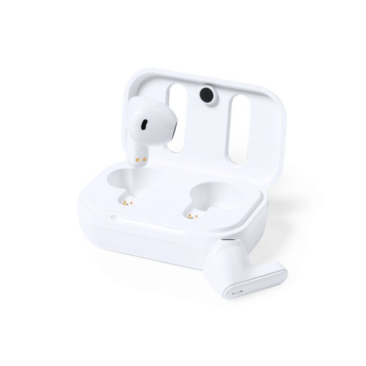 Auriculares intraurales Bluetooth, fabricados en RABS y en elegante color blanco, con la tapa de la base de carga forrada en cuero reciclado.Conexión Bluetooth 5.1, función manos libres y batería de 30 mAh. De diseño ergonómico, incluyen botón de control táctil integrado en cada auricular y luz LED de estado de carga. Base de carga a juego, con batería de 300mAh. Incluye cable cargador Tipo C y manual de instrucciones en español e inglés. Presentado en caja individual de diseño kraft.El material RABS o ABS Reciclado y el cuero reciclado proceden del reciclado de artículos al final de su vida útil. Los materiales reciclados empleados incorporan la certificación RCS, que garantiza el origen reciclado de los mismos. (color marrón)