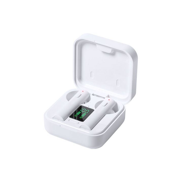 Auriculares intraurales en elegante acabado blanco y conexión Bluetooth 5.0. Con panel de carga solar integrado en la tapa y pantalla LCD interior con indicador de estado de carga. De diseño ergonómico, incluyen botón de control integrado en el auricular, con base a juego. Función manos libres y recargables con energía solar o mediante cable micro USB -incluido-. Presentados en estuche individual premium con apertura de bisagra y en atractiva caja de diseño, con manual de instrucciones en español e inglés. (color blanco)