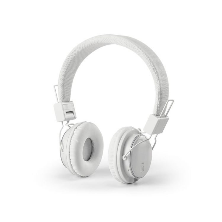 Auriculares plegables ajustables, hechos en ABS. Incluyen una estructura acolchada, transmisión por BT, lector de tarjetas TF y tienen una autonomía de hasta 4 h. Permiten contestar llamadas, control del volumen, conexión a playlist del dispositivo móvil y radio FM. Incluye un cable USB para cargar la batería. Suministrados en caja de regalo. Cerrados: 165 x 135 x 70 mm | Caja: 150 x 150 x 70 mm. Producto en color blanco