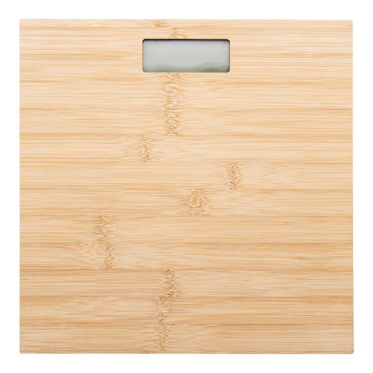 Báscula de baño digital con plataforma de bambú. Capacidad: 150 kg, graduación 0,1 kg, unidades de medida: kg/lb/st. Con batería recargable incorporada. Incluye cable de carga USB