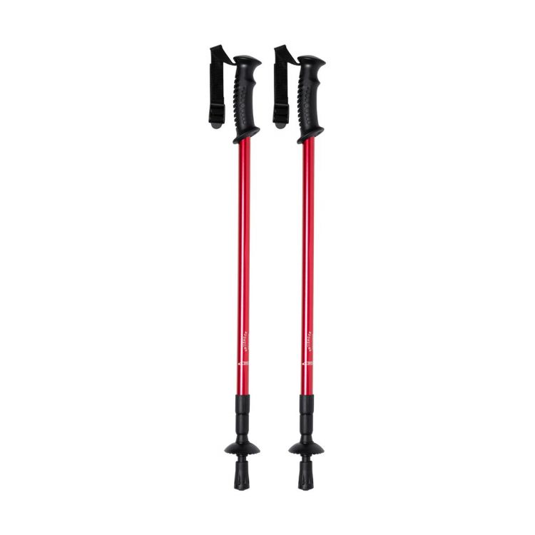 Juego de 2 bastones telescópicos de marcha nórdica con cuerpo de aluminio, empuñadura ergonómica, muñequeras y sistema antichoque. Con cestas de nieve en bolsa de transporte.