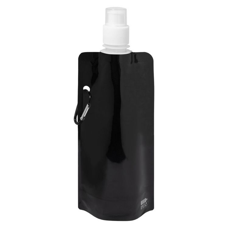 Bidón plegable de RPET con tapa y mosquetón de aluminio, 500 ml. Libre de BPA. No apta para bebidas con gas.