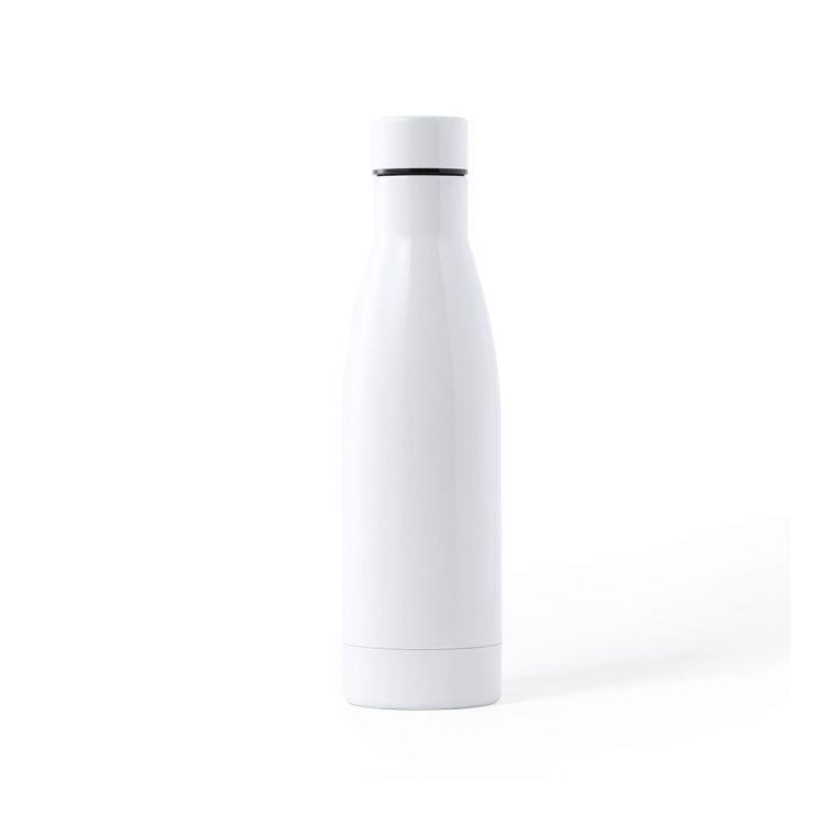 Bidón de acero inox de 700ml de capacidad. Acabado en suave y brillante color blanco, especialmente diseñado para marcaje en sublimación. Con tapón de seguridad en acero inox, libre de BPA. Presentado en atractiva caja de diseño. (color blanco)
