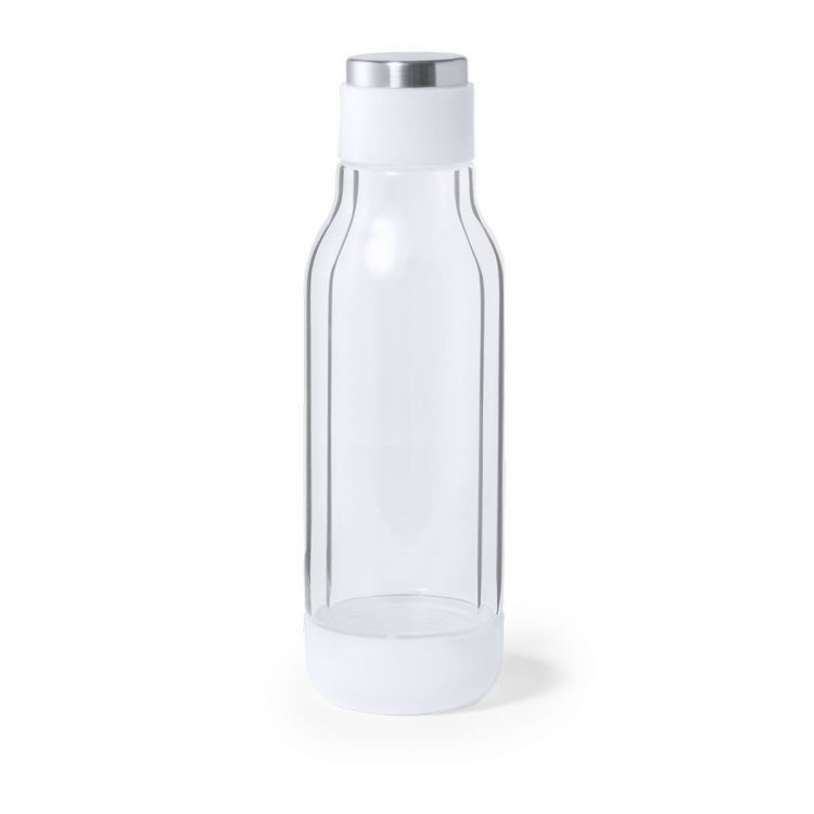 Bidón térmico de doble capa, de original diseño en alta calidad y de 500 ml de capacidad. Fabricado en cristal de borosilicato, que ofrece una resistencia, estética y durabilidad excepcionales, reduciendo así el consumo de productos de usar y tirar. Innovador cuerpo transparente que permite ver el interior en combinación con color blanco, fabricado con materiales de alto poder aislante. Presentado en atractiva caja de diseño. (color natural)