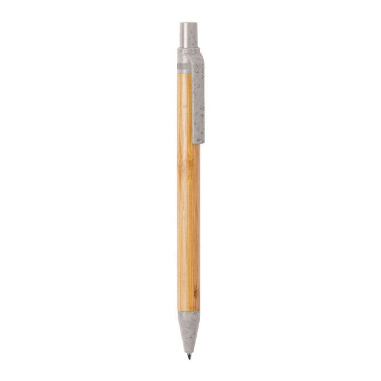 Bolígrafo de bambú con piezas de plástico ecológico de paja de trigo. Con recambio azul.