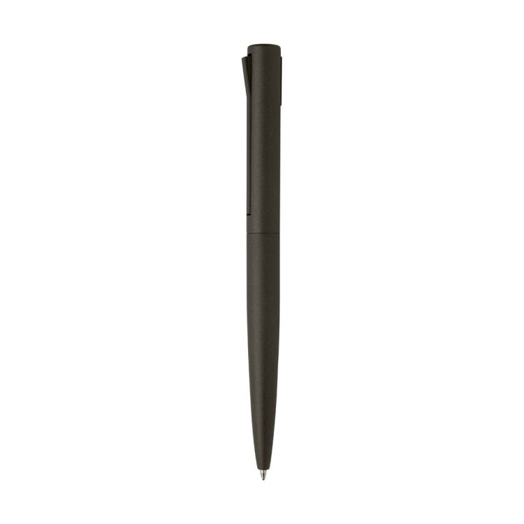 Bolígrafo de aluminio reciclado en color metálico mate, con cuerpo superior de ABS reciclado y movimiento especial del clip. Con recarga azul.