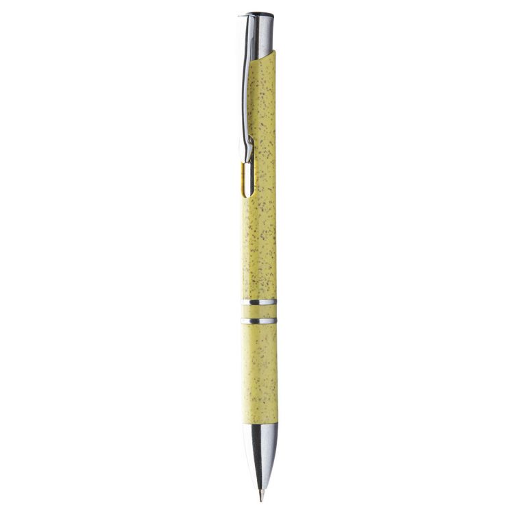 Bolígrafo ecológico de plástico de paja de trigo con piezas metálicas. Con recambio azul.