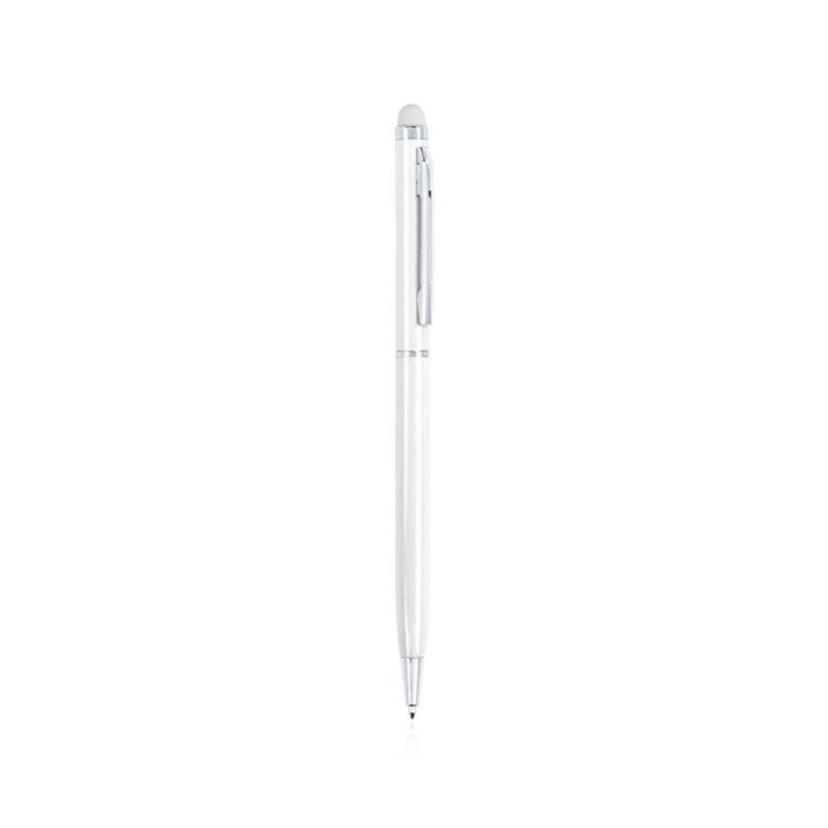 Bolígrafo puntero de mecanismo giratorio con cuerpo ultrafino en aluminio de suave acabado metalizado en variados colores y con puntero a juego. Accesorios y anillas en color plateado. Tinta azul.