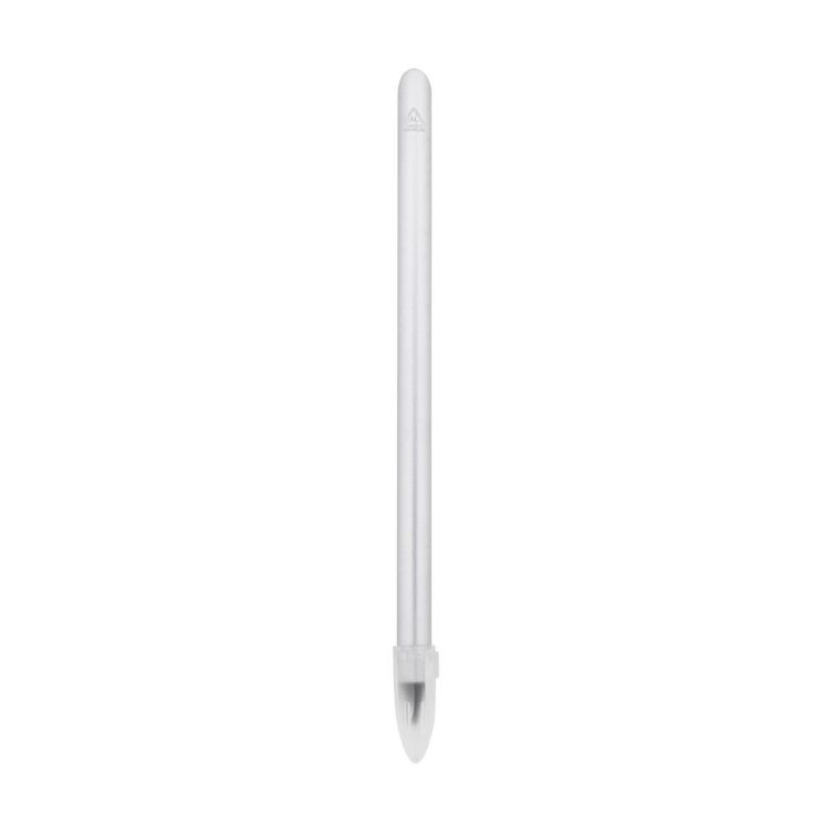 Bolígrafo sin tinta de aluminio reciclado con punta de aleación metálica, que oxida el papel. Este bolígrafo escribe de forma similar a un lápiz, y además es borrable.