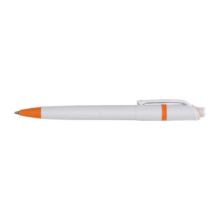 Bolígrafo Stilolinea Ducal de plástico con cuerpo blanco, punta y anilla de color. Tinta azul alemana Dokumental.