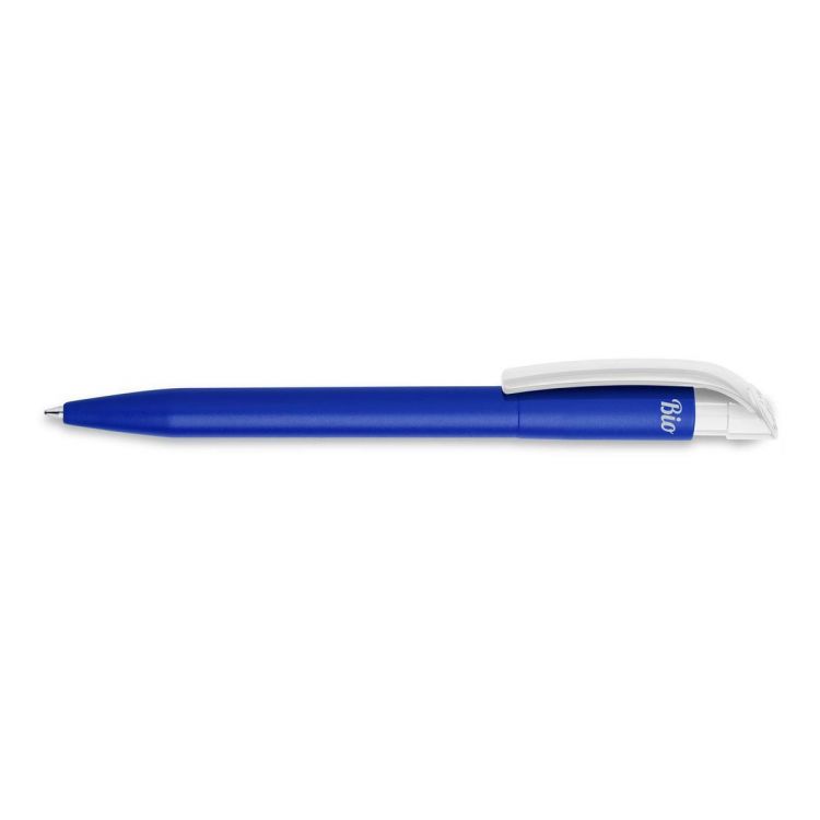 Bolígrafo Stilolinea S45 BIO, fabricado con un 75 % de PLA y con clip blanco. Tinta azul alemana Dokumental.