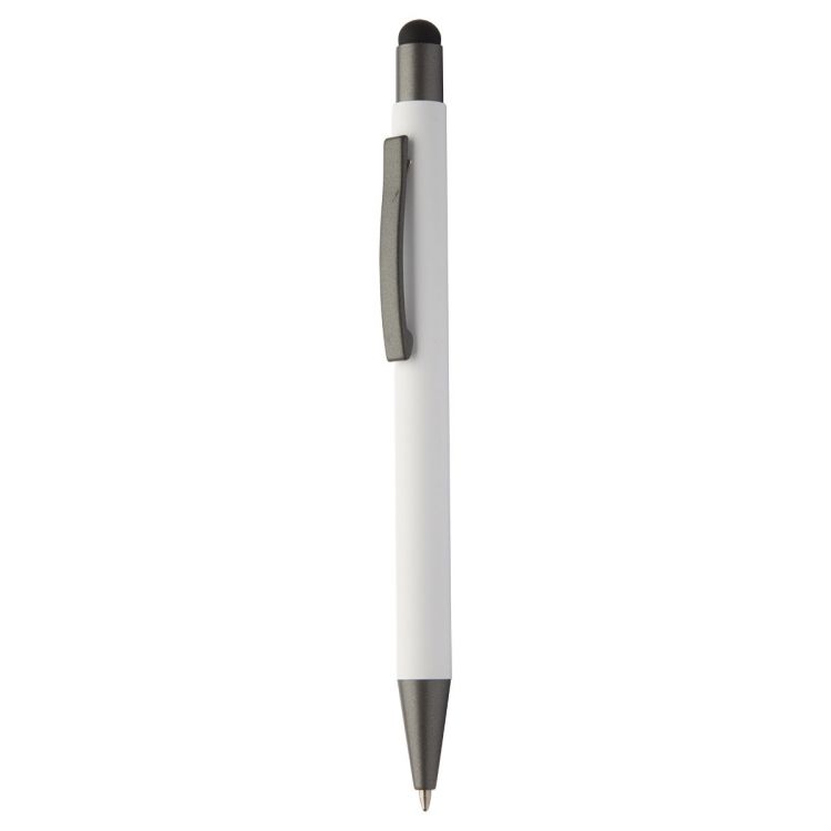 Bolígrafo de aluminio reciclado y pantalla táctil con cuerpo engomado y piezas con acabado gunmetal. Con recambio azul.