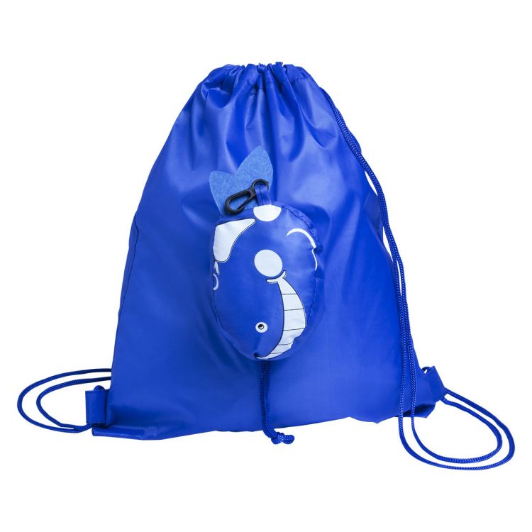 Bolsa plegable con cordón para niños con bolsa en forma de animal y mosquetón de plástico, poliéster 190T.