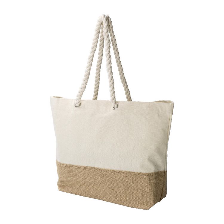 Bolsa de lona de algodón (280 g/m2) con detalle de yute. Con asas largas y retorcidas de algodón.
