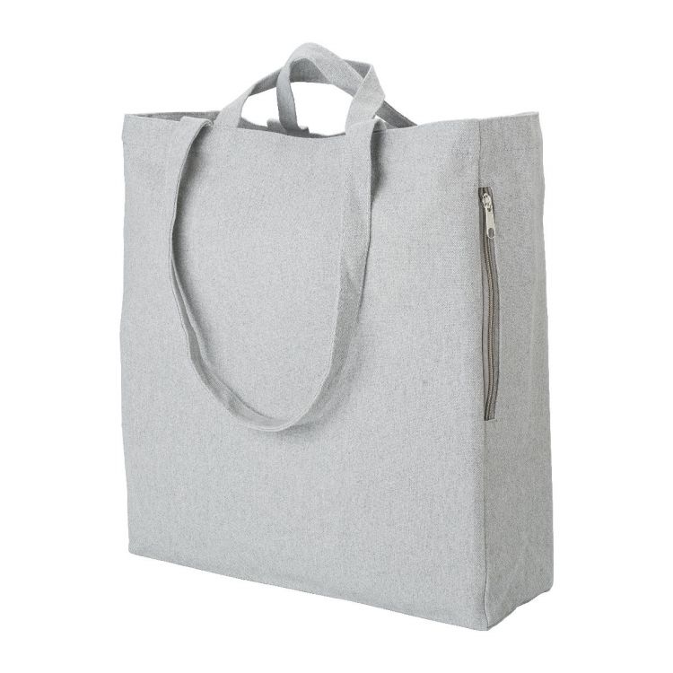 Bolsa de la compra de poliéster y algodón reciclado (350 g/m²) con asas cortas y largas. Bolsillo lateral con cremallera.