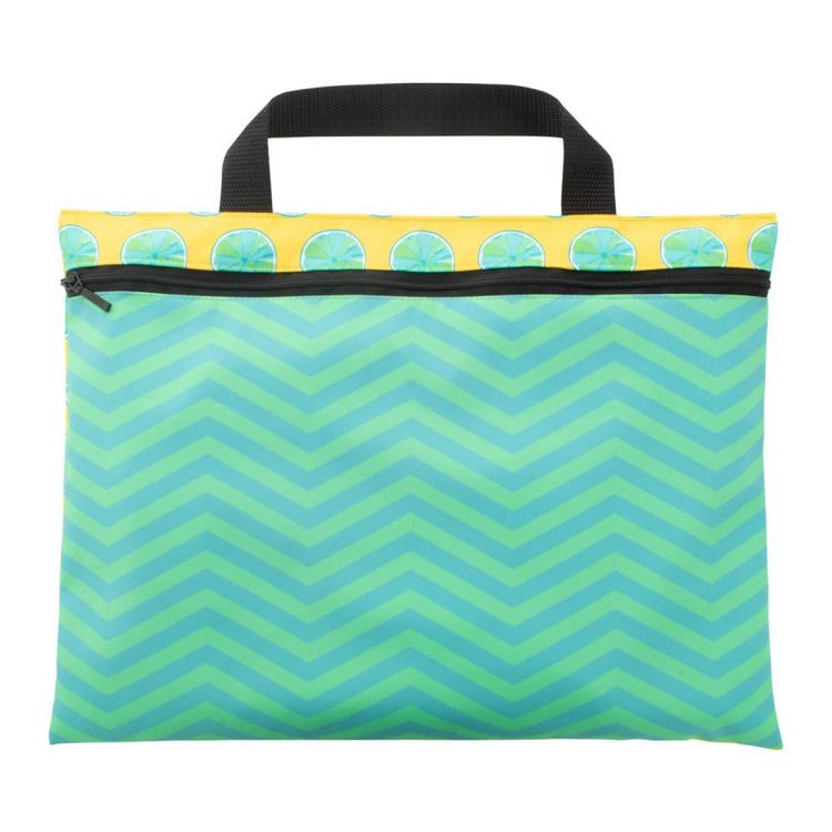 Bolsa portadocumentos de poliéster con cremallera, hecha a medida. Con gráficos impresos por sublimación. Cantidad mínima: 25 unidades.