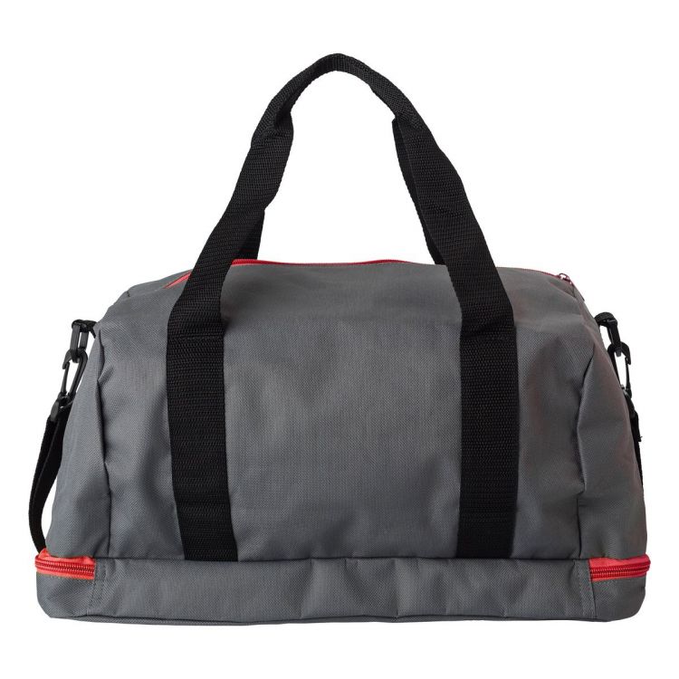 Bolsa deportiva o de viaje, de poliéster (600 D) con un bolsillo con cremallera y un compartimento separado para zapatos en la base. Tiene dos asas y una correa ajustable.