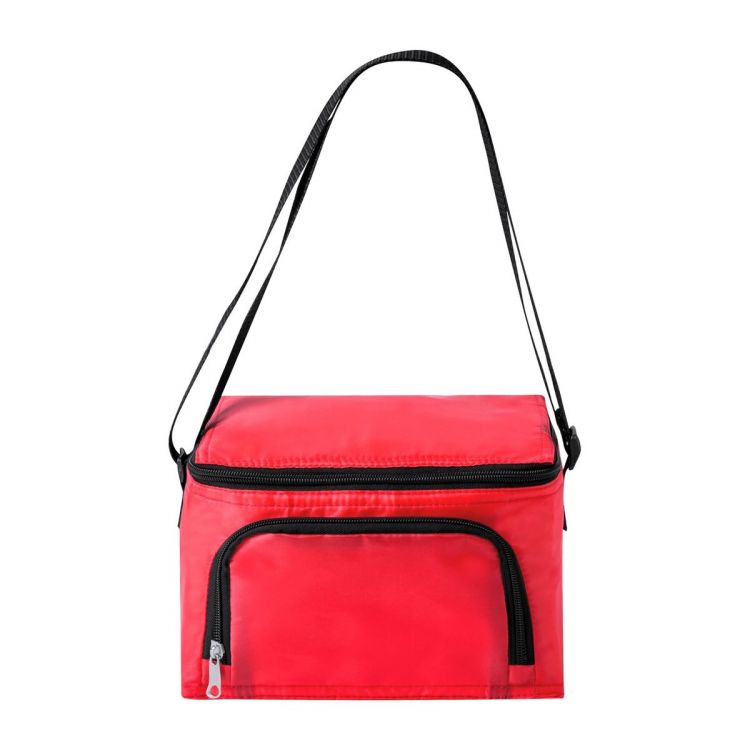 Bolsa nevera de poliéster con compartimentos con cremallera, acolchado de aluminio y correa para el hombro. Para 6 latas de 0,33 L. Poliéster 210D.