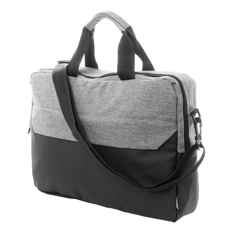 Bolsa impermeable RPET acolchada para documentos y portátil con compartimento principal con cremallera, bolsillo frontal con cremallera y correa ajustable para el hombro. Para portátiles de hasta 15". Poliéster RPET 600D recubierto de PU con etiqueta RPET distintiva