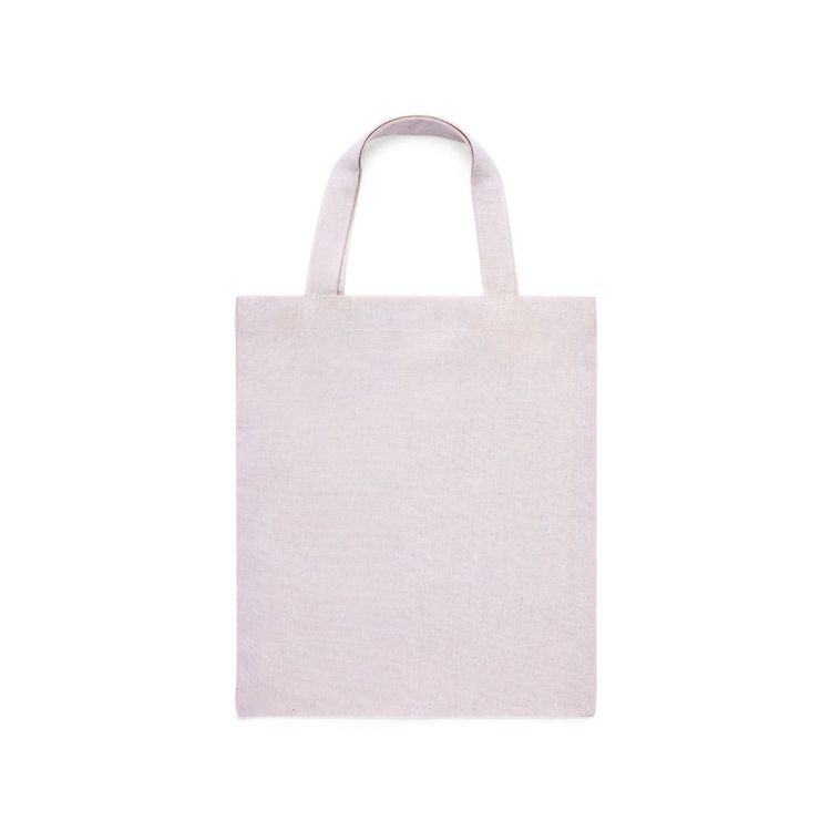 Bolsa fabricada en algodón 100%, de acabado natural y en 120g/m2. De acabado cosido y con asas cortas reforzadas (30 x 2,5cm). Resistencia hasta 5 kg de peso. (color natural)