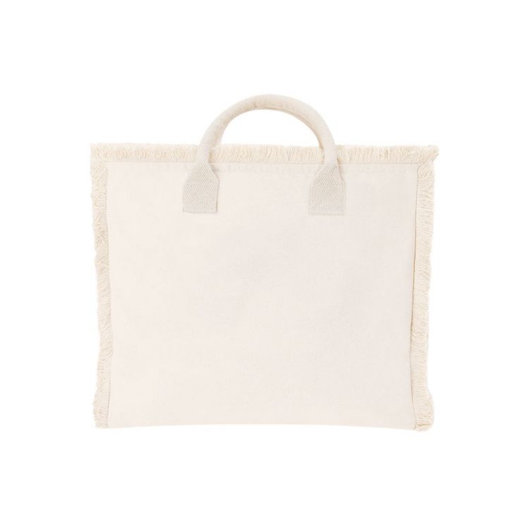 Bolsa con estilo flecos confeccionada principalmente en algodón de 360 g/m2. De práctico y moderno diseño, incorpora asas cortas reforzadas. Incluye cierre de cremallera para mayor seguridad y bolsillo interior con cremallera. (color natural)