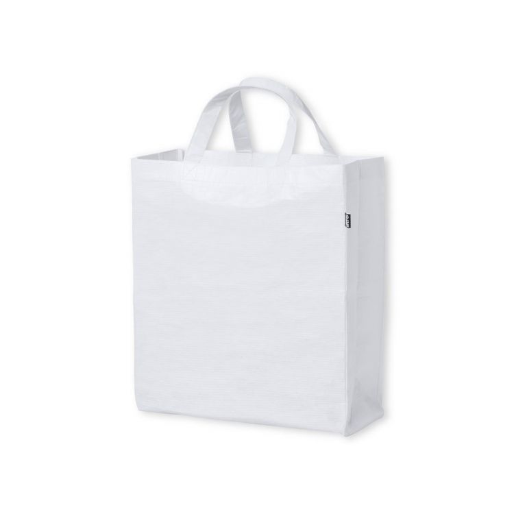 Bolsa de línea nature fabricada RPET laminado de 110g/m2. De acabado cosido, con fuelle y asas cortas reforzadas (35 x 2,5cm). Disponible en variada gama de colores, con distintivo RPET en etiqueta exterior. Resistencia hasta 5 kg de peso.El material RPET se elabora a partir de plástico reciclado, para así fomentar la reutilización de residuos plásticos y ayudar a la sostenibilidad del planeta.