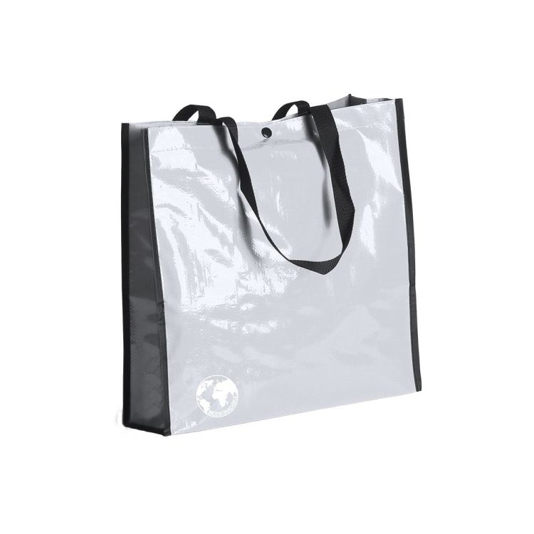 Bolsa reutilizable en resistente material laminado. Con asas largas reforzadas en nylon de 70cm, fuelle reforzado con ribetes y cierre de corchete. De acabado cosido y resistencia hasta 12kg de peso. Disponible en gama de colores brillantes.
