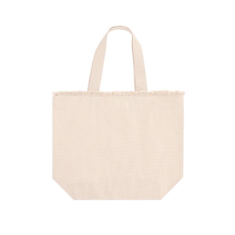 Bolsa con estilo flecos confeccionada principalmente en algodón de 320 g/m2. De práctico y moderno diseño, incorpora asas largas reforzadas. Incluye cierre de cremallera para mayor seguridad. (color natural)