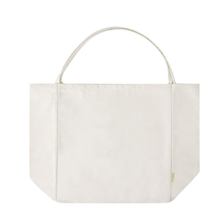 Bolsa en material 100% algodón reciclado de 300 g/m2. Asas largas de 60cm con refuerzo, de acabado cosido y fuelle. Logotipo en etiqueta lateral y resistencia hasta 12 kg de peso. Disponible en color natural. (color natural)