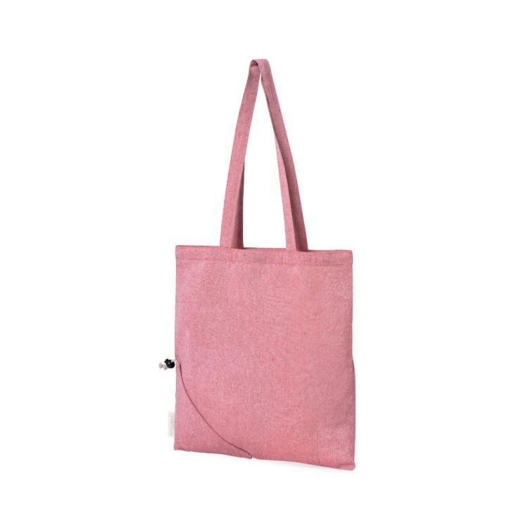 Bolsa plegable de línea nature, fabricada en algodón reciclado de 120g/m2. De acabado cosido y con asas largas reforzadas (70 x 2,5cm). Plegado de pequeño tamaño mediante cordón con accesorio de ajuste. Disponible en variada gama de colores, con distintivo algodón reciclado en etiqueta exterior. Resistencia hasta 6 kg de peso. Certificación GRS (Global Recycled Standard / Estándar de Reciclaje Global), que garantiza el origen reciclado del material usado para fabricar el producto