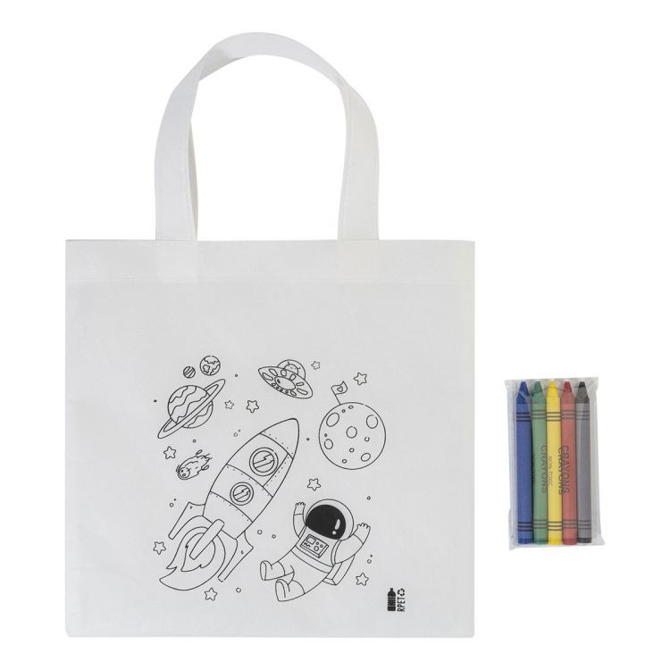 Bolsa shopper mini para colorear, de RPET no tejido, con 5 ceras