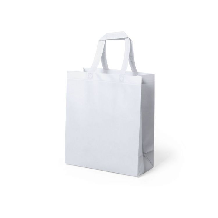 Bolsa en non-woven de 70g/m2, en color blanco y especialmente diseñada para marcaje en sublimación. De acabado termosellado, con fuelle y asas cortas reforzadas (35 x 2,5 cm). Resistencia hasta 8 kg de peso. (color blanco)