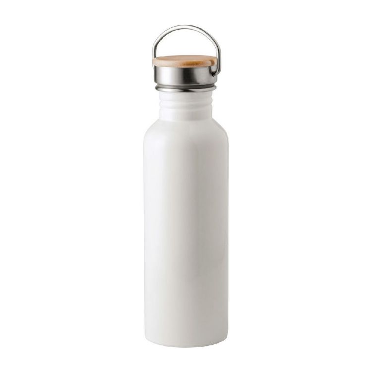 Botella de acero inoxidable de color con tapa de transporte de bambú, 800 ml.