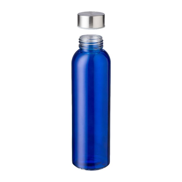 Botella de cristal (500 ml) con tapón de acero inoxidable. Presentada en una caja de cartón marrón. Recomendable para uso de agua fría. Evitar bebidas ácidas o con gas.