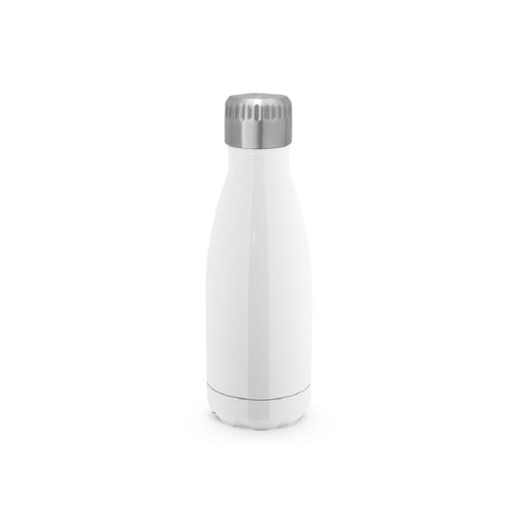 Botella para sublimación de acero inoxidable con doble pared aislada al vacío y tapa con sistema de vacío. Capacidad hasta 380 mL. Suministrado en una caja de regalo. ø70 x 218 mm. Producto en color blanco