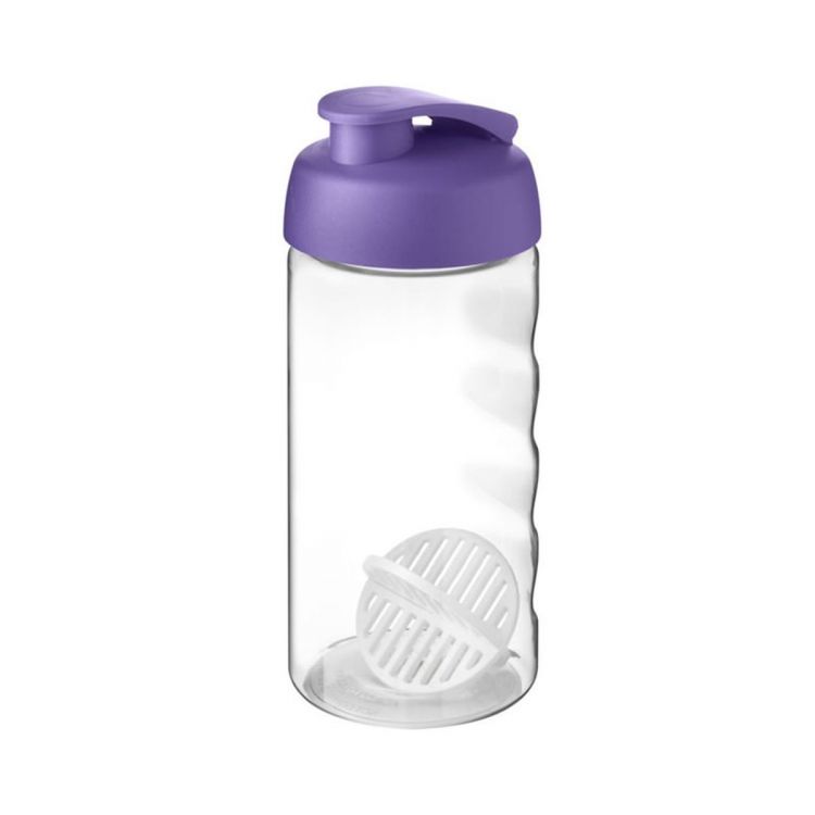 Botella deportiva de pared simple con bola mezcladora para mezclar batidos de proteínas. Tapa hermética con cierre abatible. Diseño curvo. Capacidad de 500ml. Fabricado y empaquetado en el Reino Unido. Plástico PET y PP/PE