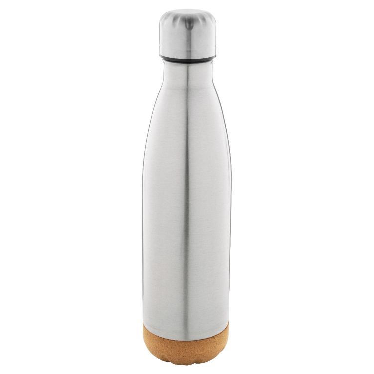 Botella isotérmica de acero inoxidable reciclado de doble pared con base de corcho natural. 500 ml.
