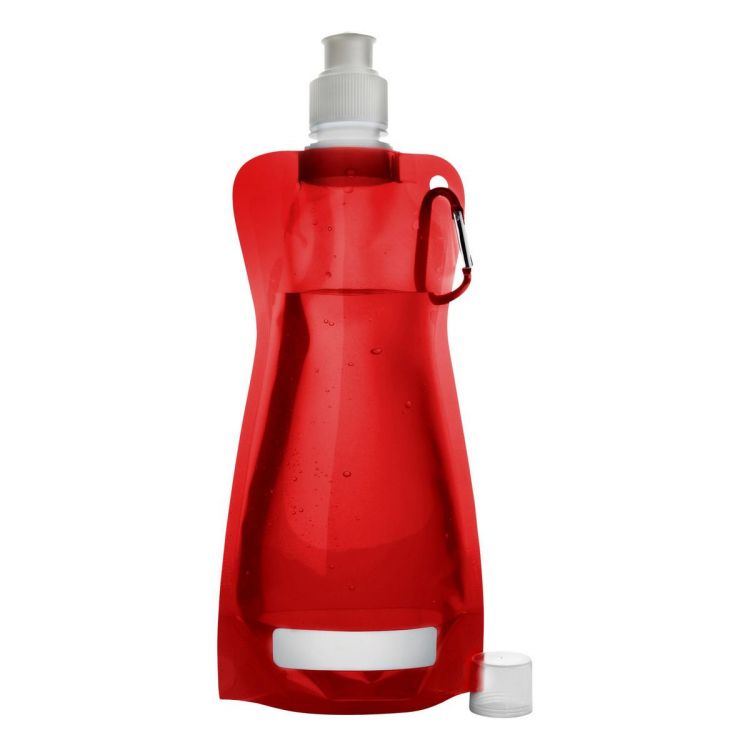 Bidón (420 ml) plegable y transparente, salvo los colores blanco (02) y plata (32) que son opacos. Reutilizable, con boquilla extraíble y mosquetón de aluminio.