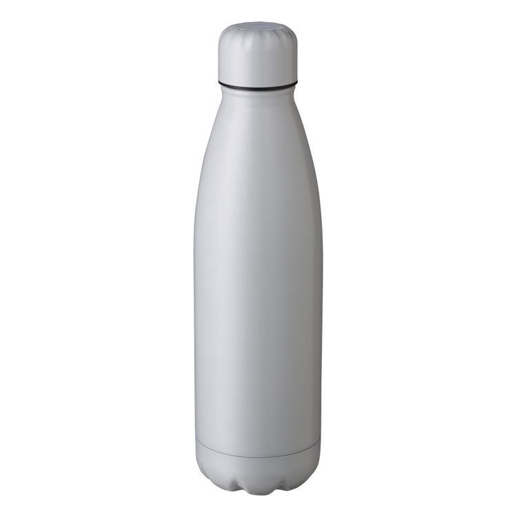 Botella termo de doble pared de acero inoxidable (500 ml) con acabado mate. El interior es de acero inox. 304 y el exterior es de acero inox. 201. Presentada en una caja de cartón marrón. Evitar bebidas ácidas o con gas.