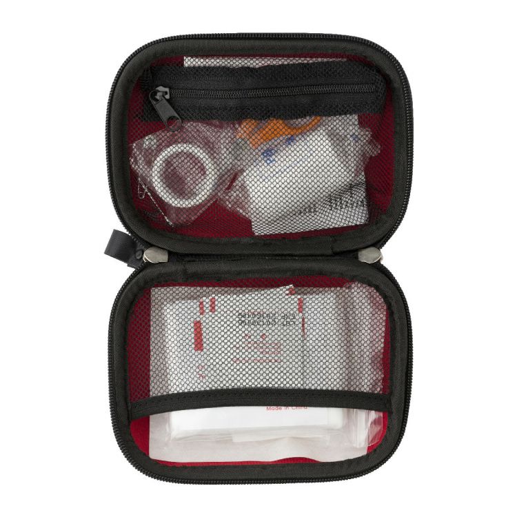Botiquín de EVA. Contiene 1 gasa, 1 paquete de vendas, 1 venda triangular, 2 imperdibles, tijeras, 4 toallitas con alcohol, 5 tiritas y 1 rollo de esparadrapo. Este producto solo puede venderse y entregarse dentro de la Unión Europea.