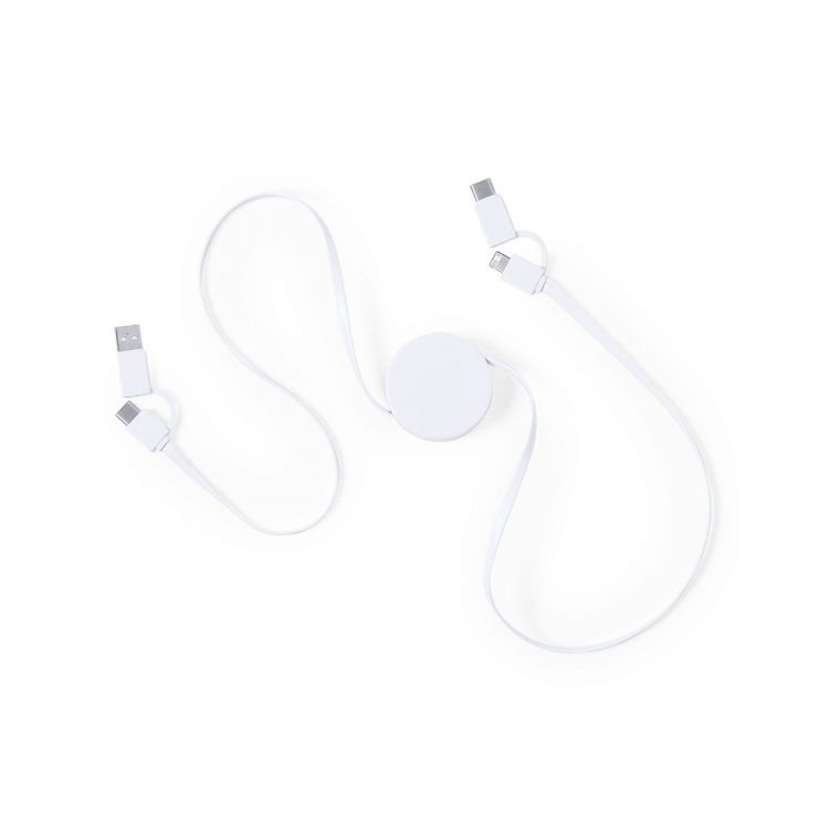 Cargador extensible de diseño ultra compacto. Conexiones Tipo C (entrada y salida), y dual Micro USB/Lightning. Función cargador y transferencia de datos. Amplia superficie de marcaje y presentado en bolsa individual. (color natural)