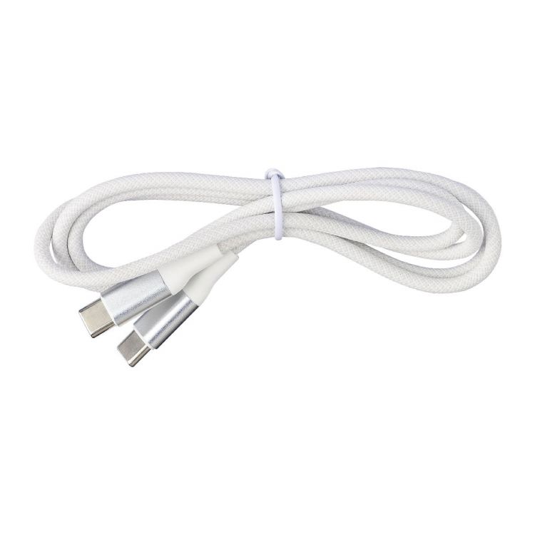 Cable de transferencia de datos y carga de nailon tipo C a tipo C con una longitud de 1 metro. Velocidad de transferencia de datos de 120 Mbps. El enchufe de aluminio está agrandado para permitir la impresión. Salida de carga de 35 W. Presentado en una caja de regalo de cartón marrón.