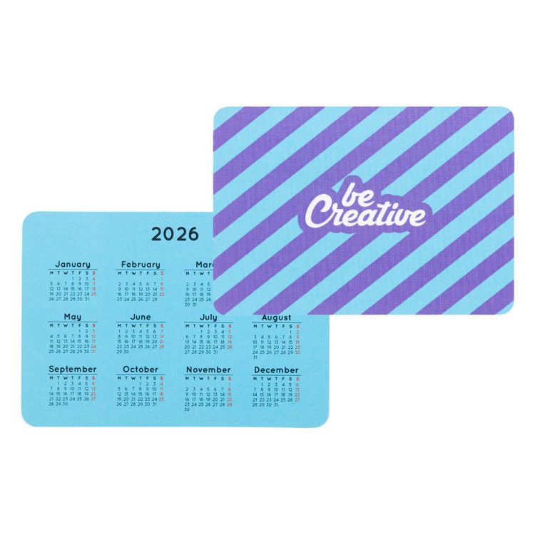 Calendario de bolsillo personalizado en cartulina (270 g/m²) con gráficos a todo color. El precio incluye la impresión digital a doble cara. Cantidad mínima: 250 unidades