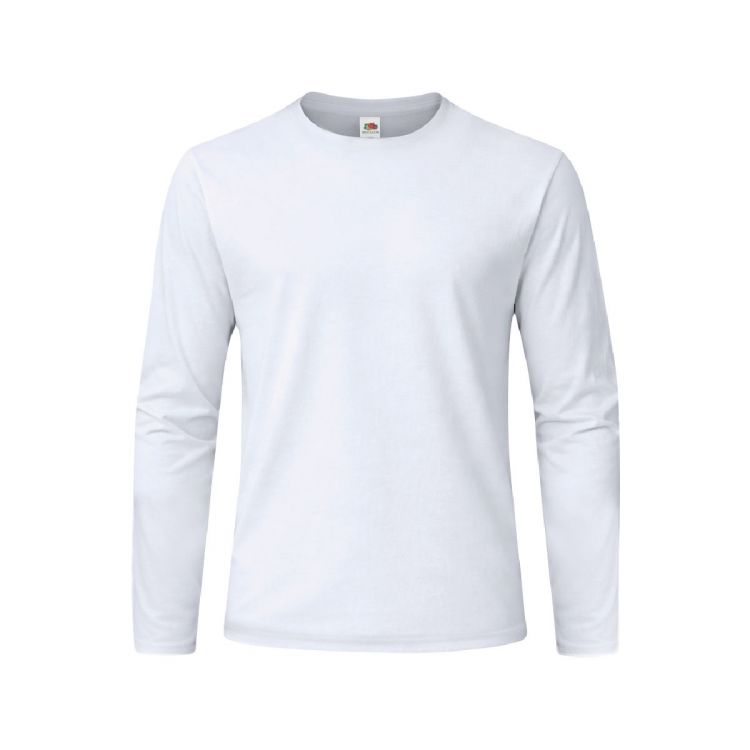 Camiseta adulto blanca Iconic Long Sleeve de Fruit Of The Loom. Manga larga, fabricada en material 100% algodón peinado Ring Spun de 140g/m2. De tacto suave y corte clásico, con cuello redondo estrecho de canalé 1x1 y tapeta a juego. Etiqueta fácilmente removible y disponible en tallas S, M, L, XL, XXL. (color blanco, tamaño XXL)