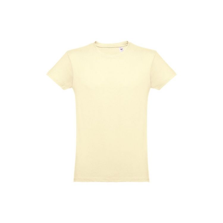 Camiseta unisex en forma tubular y corte regular en punto jersey de algodón 100% (150 g/m²) con hilo de algodón cardado (color 183: 90% algodón/10% viscosa). Tiene cuello de piqué 1x1 con cinta de refuerzo de punto y doble costura en mangas y bajo. Tallas: XS, S, M, L, XL, XXL. Producto en color amarillo claro, tamaño XXL