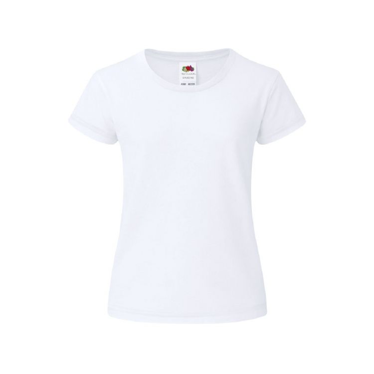 Camiseta para niña blanca Iconic de Fruit Of The Loom. Fabricada en material 100% algodón peinado Ring Spun de 140g/m2. De tacto suave y corte entallado, con costuras laterales diseñadas para un ajuste perfecto. Cuello redondo estrecho de canalé 1x1 y tapeta a juego. Etiqueta fácilmente removible y disponible en tallas 3-4, 5-6, 7-8, 9-11, 12-13, 14-15. (color blanco, tamaño 7-8)