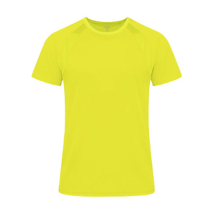 Camiseta técnica para niño en material 100% poliéster transpirable de 135g/m2. Con manga ranglán, cuello redondo y con bandas frontales y laterales en tejido transpirable microperforado. Disponible en tallas 4-5, 6-8, 10-12.